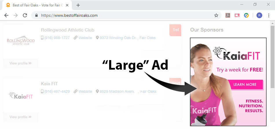 This ad will be displayed across all categories. The dimensions for a "Large" ad are 520w x 600h pixels and is displayed as the highest priority ad type.
